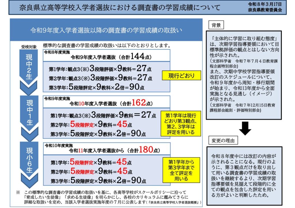 令和9年度以降の入学者選抜における調査書の取り扱いについてを書きますね。